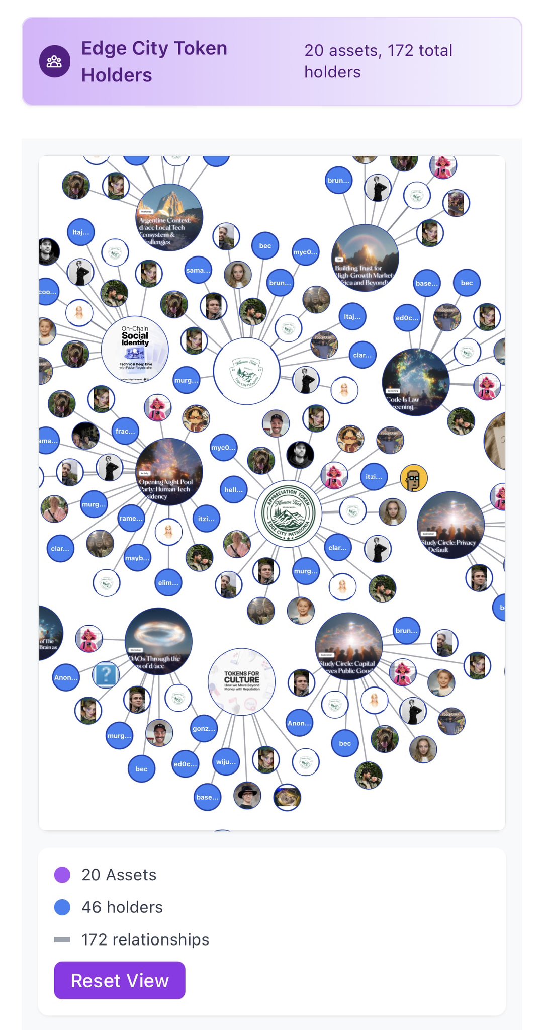 Universal Profiles provided critical infrastructure that made this tangible. Through their platform, we were able to map event attendance, create and distribute tokens for each workshop and study circle, and visualize the emerging social graph in real-time. The result was a living record of collaboration - you could see which workshops sparked the most cross-pollination, which conversations created new partnerships, which ideas gained momentum.