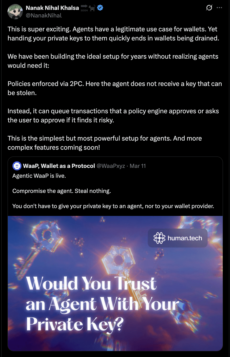 human.tech co-founder Nanak Nihal Khalsa commenting on the agentic WaaP release. March, 2026