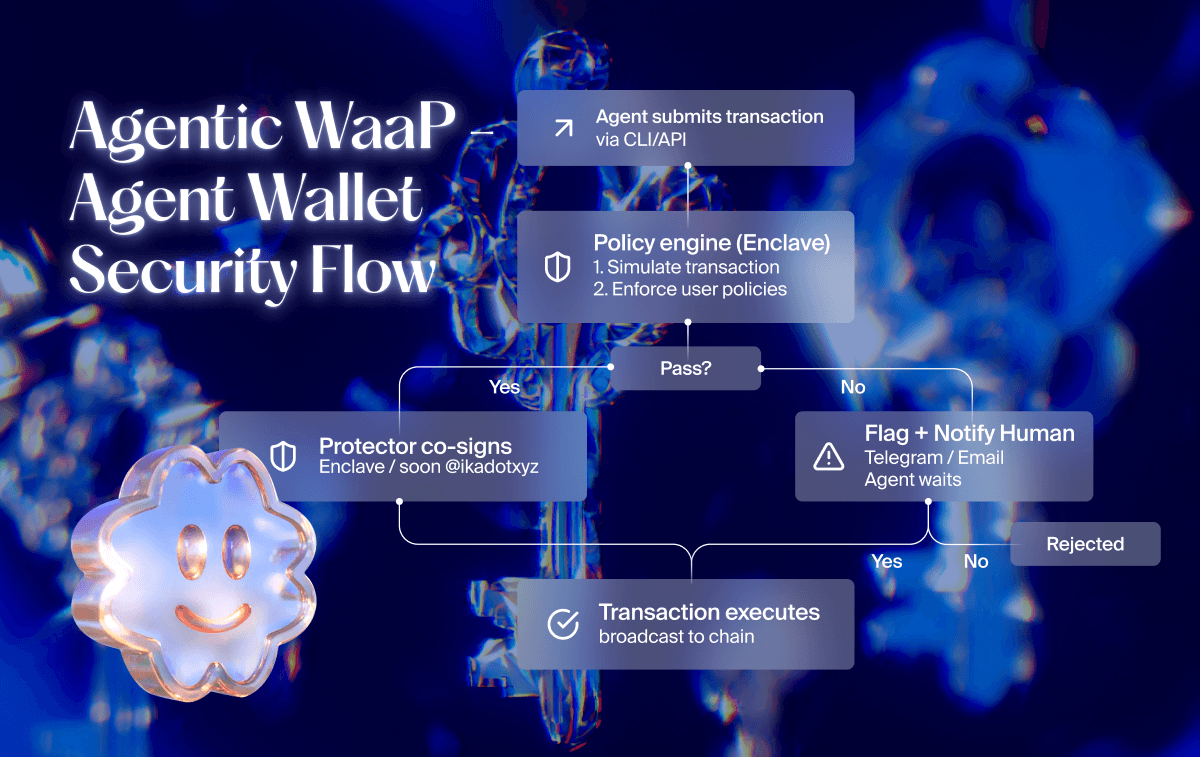 An agent operating within this model inherits the principle of least privilege by default, without any additional trust assumptions. Policies can be customized per agent — spending rules, whitelisted contracts, transaction limits, conditional approvals. And because the agent transacts through WaaP's signing layer, it inherits the full security stack built for human users: blind signing protection, clickjacking resistance, and malware detection.